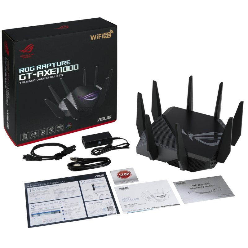 ASUS ROG Rapture GT-AXE11000 – Router gaming Wi-Fi 6E (802.11ax) tribanda con banda de 6 GHz, puerto WAN/LAN 2.5G, compatibilidad PS5, agregación WAN, VPN Fusion, seguridad de red y soporte AiMesh.
