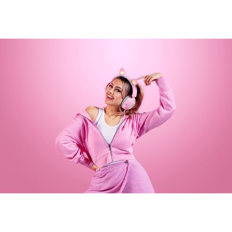 El factor gatuno. Ahora podrás crear el personaje más mono para tus retransmisiones de varias formas. Cambia tu estilo e ilumina tu retransmisión con unos auriculares Razer Chroma? RGB que cuentan con 3 diseños de orejas intercambiables, iluminación reactiva al streaming para conseguir la máxima participación del público y un micrófono de gran calidad para una captura de voz nítida.