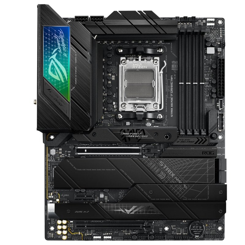 El ROG Strix X670E-F Gaming WiFi es el alter ego sigiloso del Strix X670E-A. Un aumento sustancial de potencia transmite su demonio interno, brindando a las exclusivas utilidades de overclocking ROG aún más espacio para liberar el potencial de los procesadores AMD Ryzen ? 7000 Series. Y su placa de circuito impreso negra y disipadores térmicos metálicos oscuros combinan estéticamente con una variedad más amplia de hardware del sistema y temas de compilación, mientras que una pizca de color personalizable en su cubierta anuncia sutilmente la presencia de ROG en su compilación AM5.
