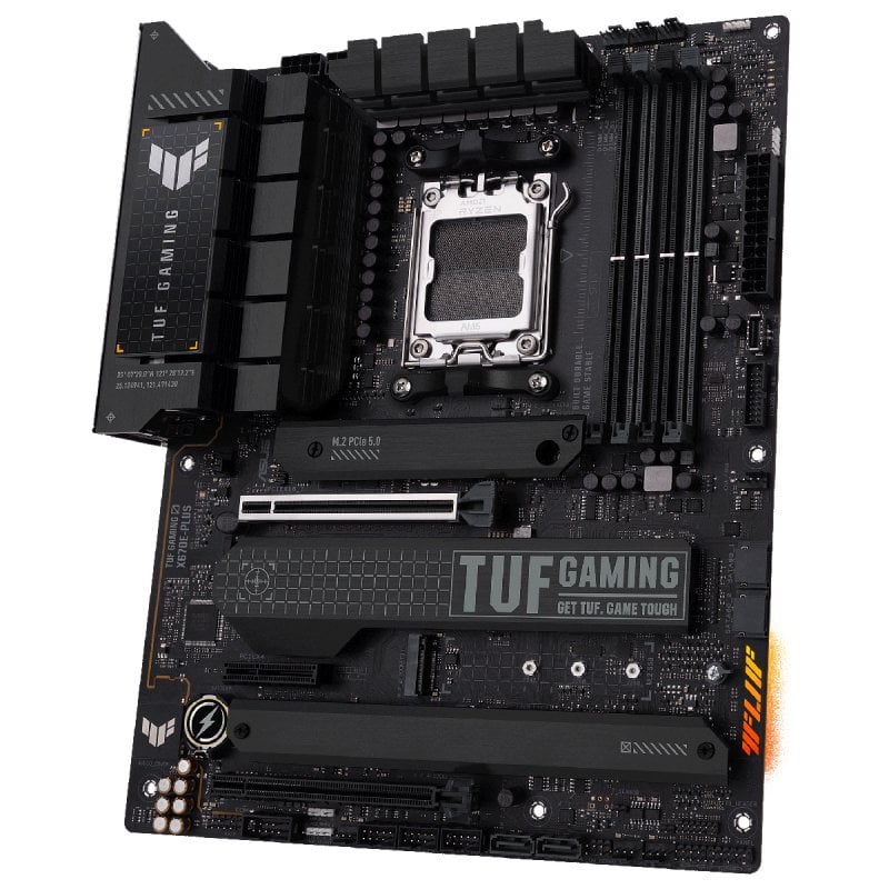 ASUS TUF GAMING X670E-PLUS toma todos los elementos esenciales de los últimos procesadores de la serie AMD Ryzen 7000 y los combina con funciones listas para jugar y durabilidad comprobada. Diseñada con componentes de grado militar, una solución de alimentación mejorada y un sistema de refrigeración integral, esta placa base supera las expectativas con un rendimiento sólido y estable para juegos de maratón. Las placas base TUF GAMING también se someten a rigurosas pruebas de resistencia para garantizar que puedan soportar condiciones en las que otras pueden fallar. Estéticamente, este modelo incorpora elementos de diseño geométricos y de color negro oscuro para reflejar la confiabilidad y estabilidad que define a la serie TUF GAMING.