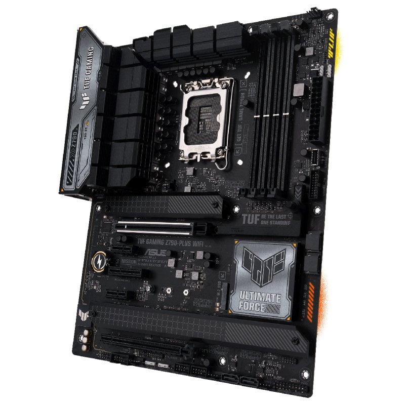 La TUF GAMING Z790-PLUS WIFI toma todos los elementos esenciales de los últimos procesadores de Intel® y los combina con características listas para jugar y una durabilidad probada. Esta placa base está diseñada con componentes de grado militar, una solución de alimentación mejorada y un completo sistema de refrigeración, por lo que va más allá de las expectativas con un rendimiento de gran estabilidad para jugar sin descanso. Las placas base TUF GAMING también se someten a rigurosas pruebas de resistencia para garantizar que pueden aguantar condiciones en las que otras placas fallarían. Estéticamente, este modelo incorpora una placa con el nombre en relieve y elementos de diseño geométrico para reflejar la fiabilidad y la estabilidad que definen la serie TUF GAMING.