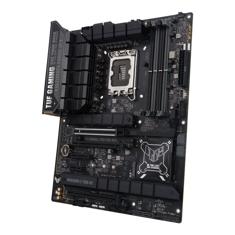 TUF GAMING Z790-PRO WIFI combina los últimos procesadores Intel® con funciones listas para juegos y durabilidad de grado militar. Con su solución de energía premium y su completo sistema de enfriamiento, esta placa base ofrece un rendimiento sólido para juegos maratonianos. Y se somete a rigurosas pruebas de resistencia para garantizar la confiabilidad en condiciones difíciles. Mientras tanto, un distintivo emblema de goma gris adorna el disipador térmico VRM, celebrando la esencia central del vigor de TUF GAMING.