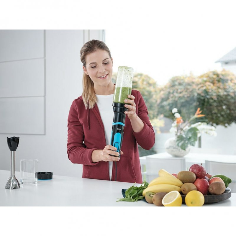 Con su nuevo e inteligente accesorio Blend & Go, la MQ 5 Vario Fit es la batidora de mano que hace más. Ahora puedes preparar batidos frescos y llevarlos contigo a la oficina, tras las actividades deportivas y dondequiera que vayas en la misma botella.