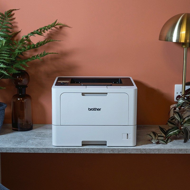 Impresora láser profesional Brother HL-L5210DW, con una velocidad de impresión de hasta 48 páginas por minuto, en blanco y negro. Permite la impresión a doble cara automática, tiene capacidad para 250 hojas de papel y conexión WiFi/Ethernet. Ideal para uso compartido por pequeños grupos de trabajo.