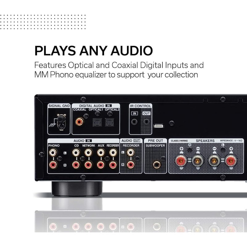 Con 70 vatios (4 ohmios, 1 kHz, THD: 0,7 %) por canal, el PMA-600NE tiene potencia suficiente para garantizar una óptima calidad de sonido con cualquier altavoz. Podrás conectar el PMA-600NE a tus componentes favoritos a través de las dos entradas digitales ópticas y la entrada digital coaxial. Alimentado por el amplificador de potencia con circuito push-pull sencillo AHC (Advanced High Current) de Denon, el PMA-600NE proporciona una calidad de sonido excepcional que combina alta potencia y delicados matices musicales.