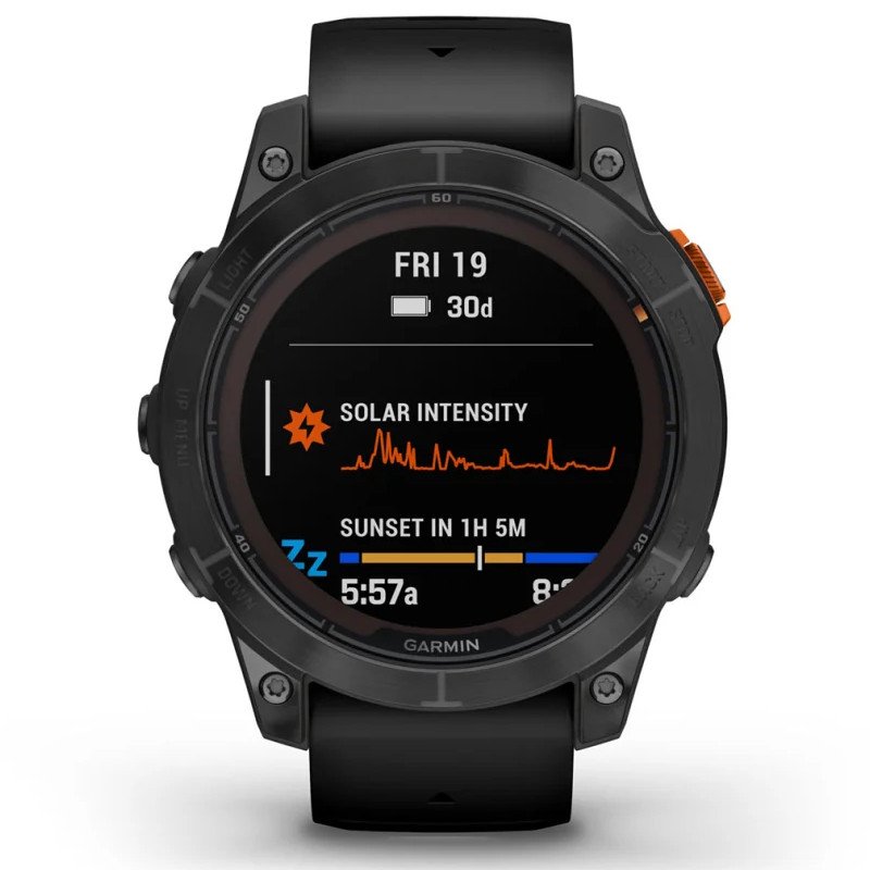 Conquista cada hora con las funciones de entrenamiento avanzadas, el seguimiento de la salud y la forma física ininterrumpido de Garmin f?nix 7 Pro Solar Edition, y hasta más de un mes de autonomía de la batería con la lente de carga solar Power Glass? y una resistente funda de reloj diseñada para durar.