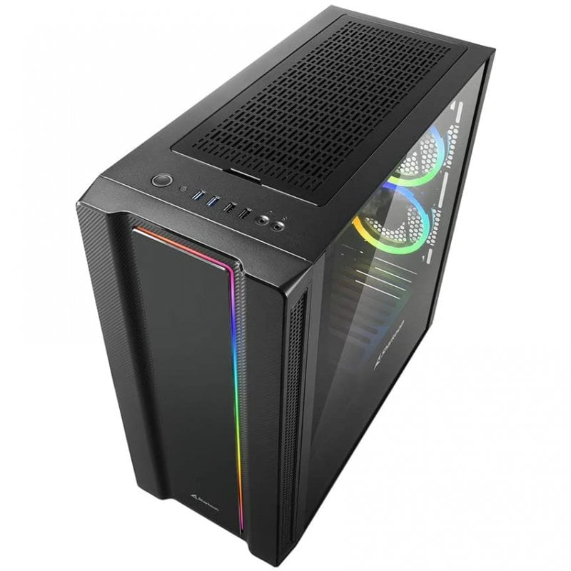 La revolución del estilo: con la torre midi ATX REV220, un diseño de caja elegante con iluminación RGB sutil pone sobre la mesa un nuevo concepto de configuración de caja de PC. Los componentes de hardware vienen instalados verticalmente alrededor de una placa base rotada 90 grados. Esto llama la atención de forma atípica, siendo mostrados detrás del panel lateral extra largo fabricado en cristal templado.