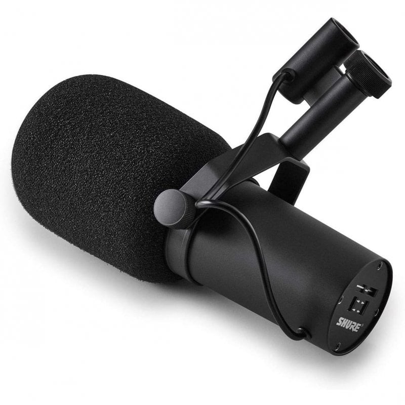 Shure SM7B es un micrófono de estudio cardioide que ofrece una reproducción de audio suave y cálida en aplicaciones de captación cercana, tanto vocales como de estudio Dispone de una amplia respuesta en frecuencia, supresión controlada de graves, realce de presencia de frecuencias medias y aislamiento antigolpes interno por suspensión de aire.